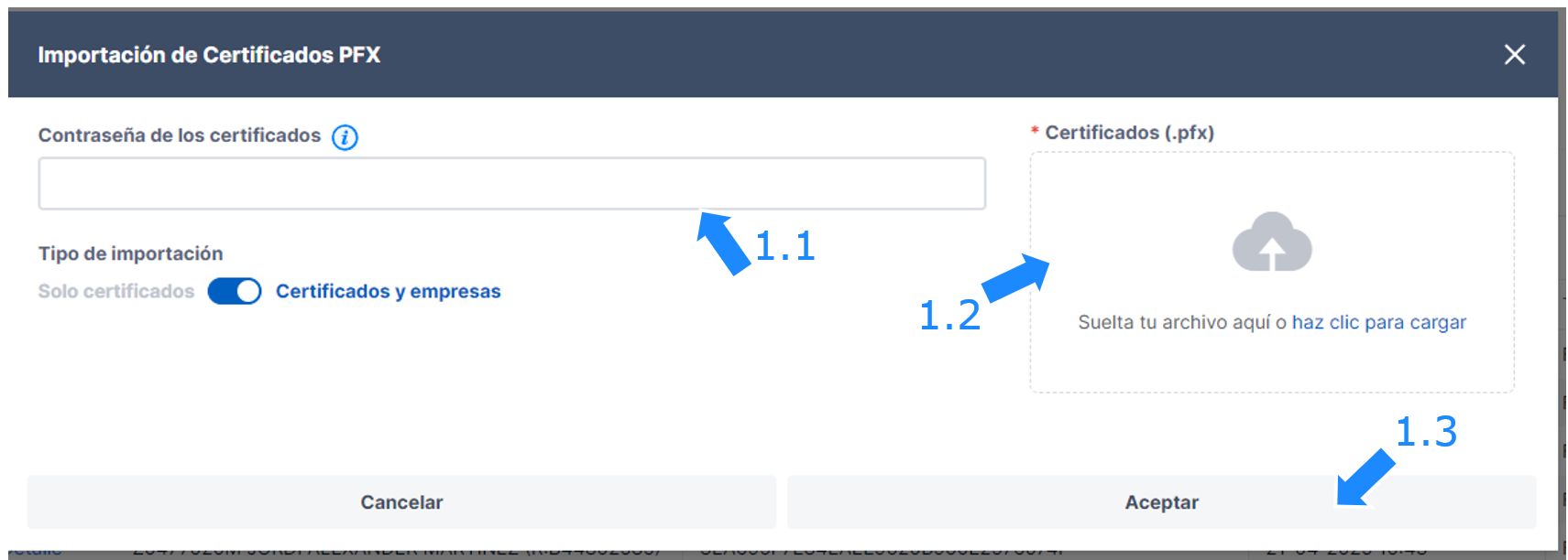 1.2-Arrastrar o cargar los certificados al recuadro de la derecha